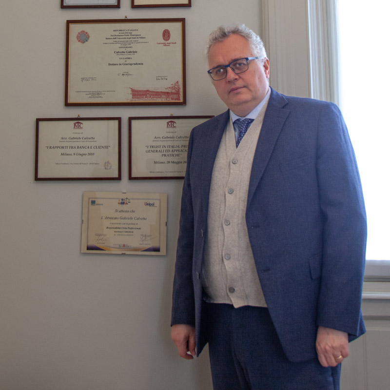 L’Avv. Gabriele Calvetto si laurea in Giurisprudenza nel 1995 presso l’Università degli Studi di Milano ed è’ iscritto all’albo degli Avvocati dal 2001. E’ abilitato al patrocinio dinnanzi alla Corte di Cassazione. L’Avv Gabriele Calvetto, fondatore dello Studio Calvetto, ha oltre vent’anni di esperienza specializzata nel diritto bancario, societario, immobiliare e patrimoniale. Nato a Milano, ha costruito il proprio percorso accademico e professionale in contesti di alto profilo e, dopo una lunga esperienza al fianco di uno dei più noti avvocati milanesi, nel 2000 ha fondato il suo Studio a Milano. La sua visione unisce eccellenza tecnica, un approccio sartoriale al cliente e una prospettiva multidisciplinare del diritto, offrendo consulenze legali solide, riservate e proattive.